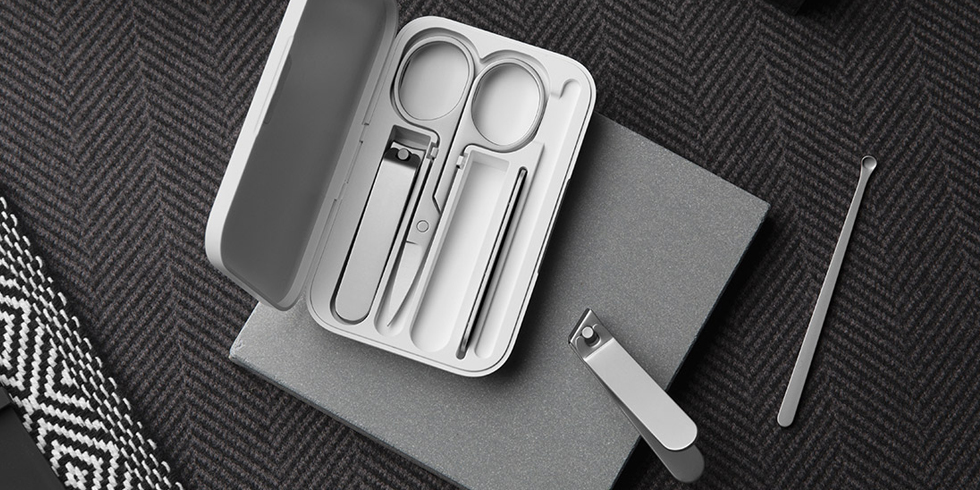 Маникюрный набор от дочернего бренда компании Xiaomi состоит из 5 самых необходимых предметов — косые кусачки для ногтей, прямые кусачки для ногтей, лопатка, ножницы, пилочка.